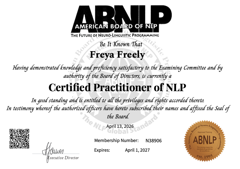 - EFT International Accredited Member (Directory Bio: https://eftinternational.org/eft-practitioner/freya-freely/)